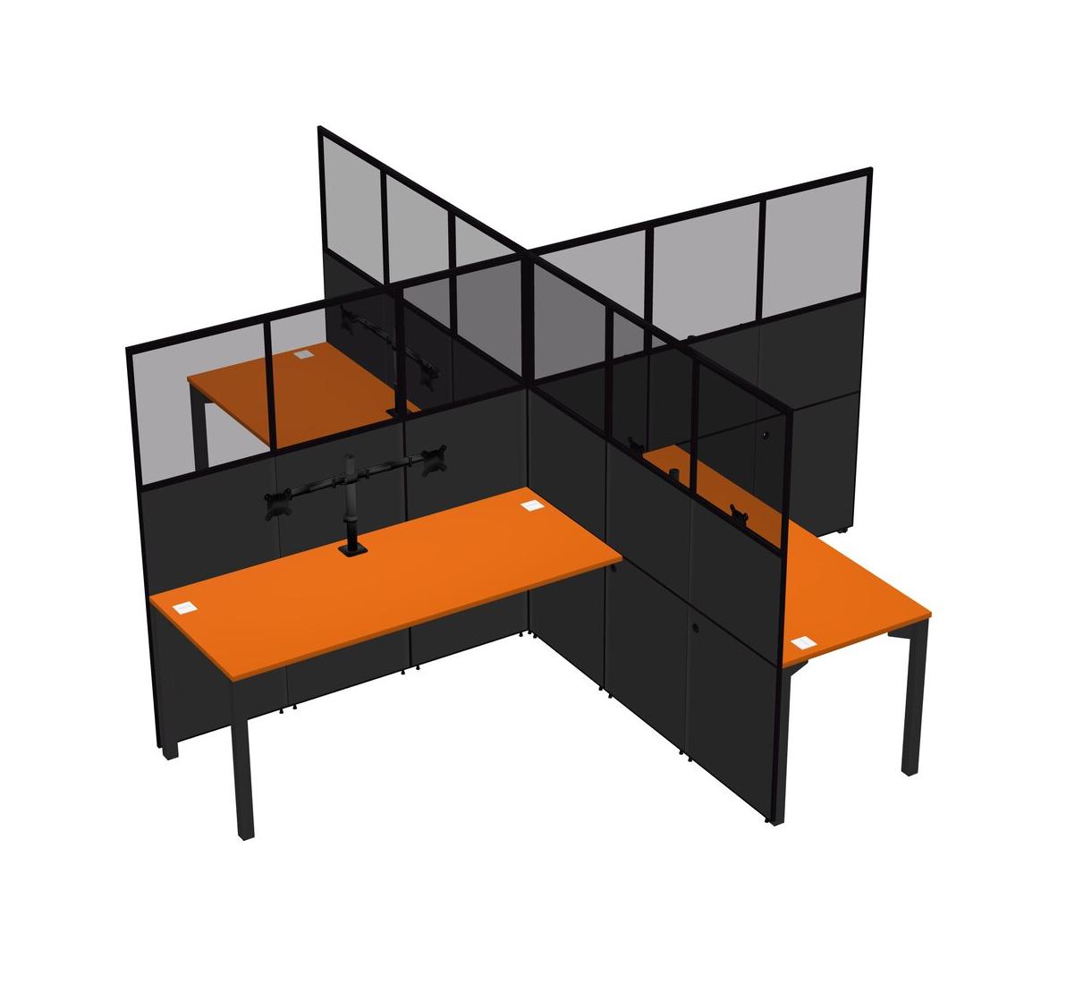 Orange Quad Cubicle Workstations For 4 + Monitor Arm (double Arms)