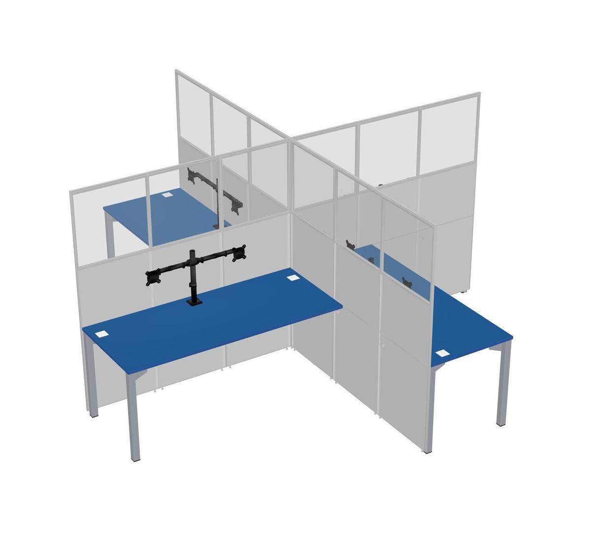 Prism Blue Quad Cubicle Workstations For 4 + Monitor Arm (double Arms)