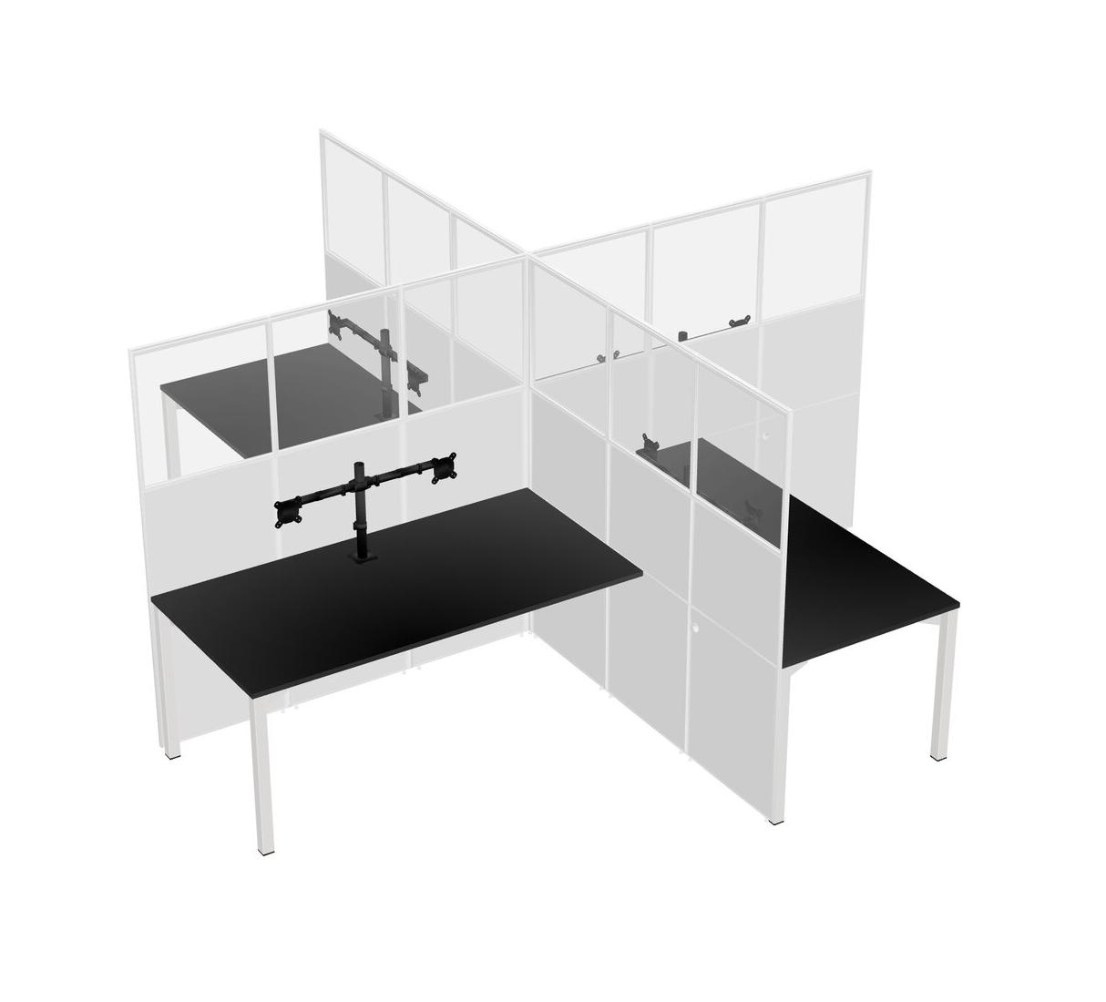 Black Quad Cubicle Workstations For 4 + Monitor Arm (double Arms)