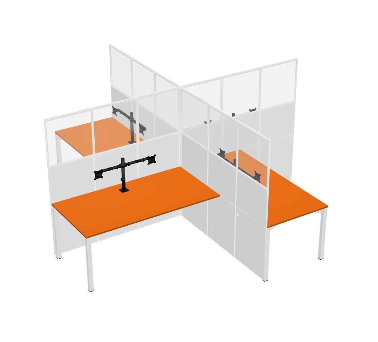 Orange Quad Cubicle Workstations For 4 + Monitor Arm (double Arms)