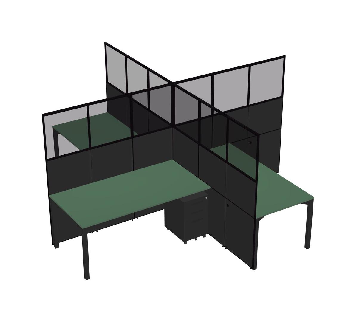 Green Quad Cubicle Workstations For 4 + Black Metal Mobile Drawers