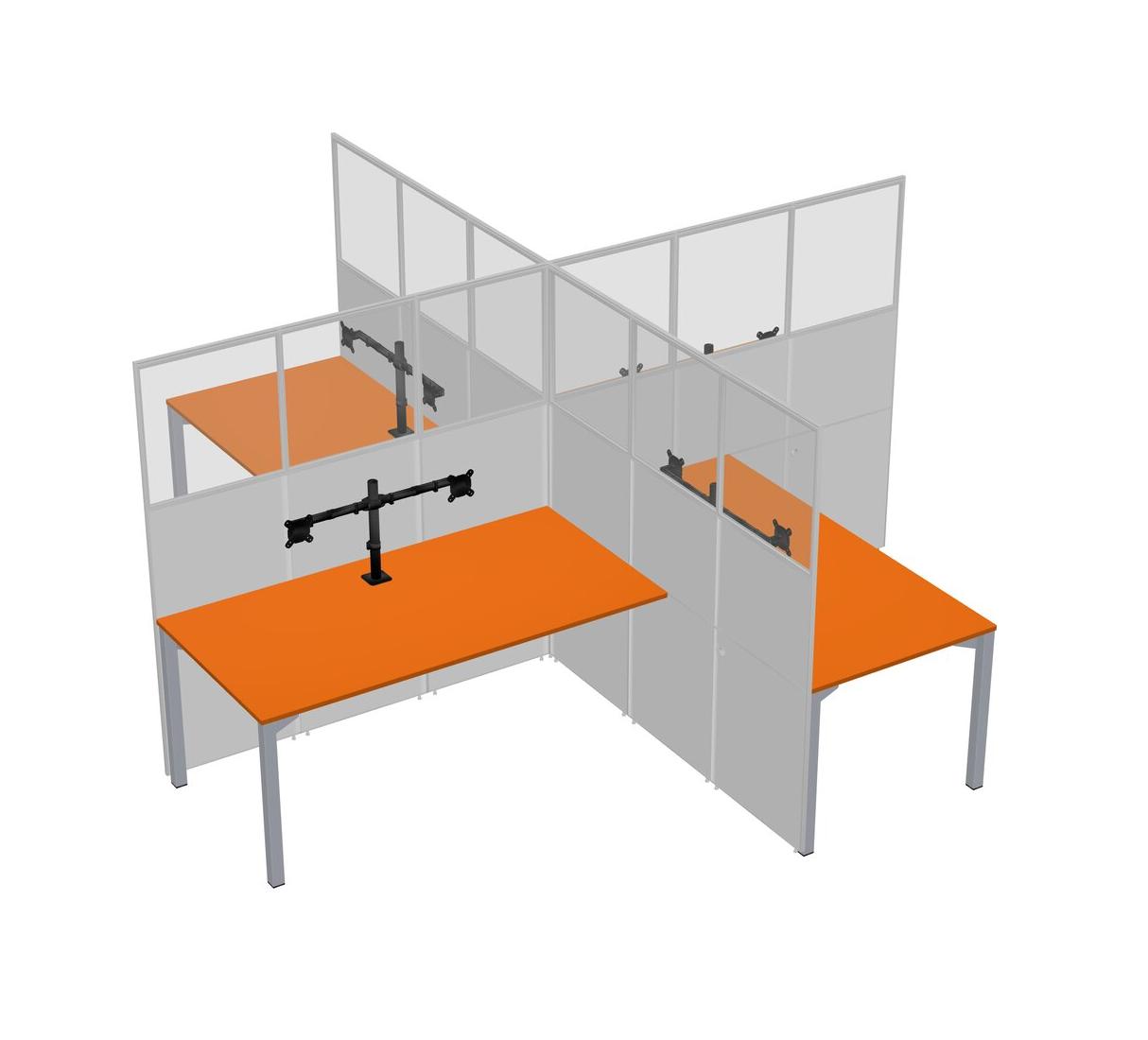 Orange Quad Cubicle Workstations For 4 + Monitor Arm (double Arms)