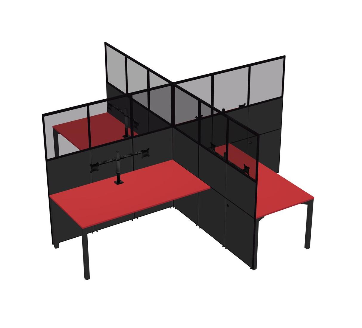 Prism Red Quad Cubicle Workstations For 4 + Monitor Arm (double Arms)