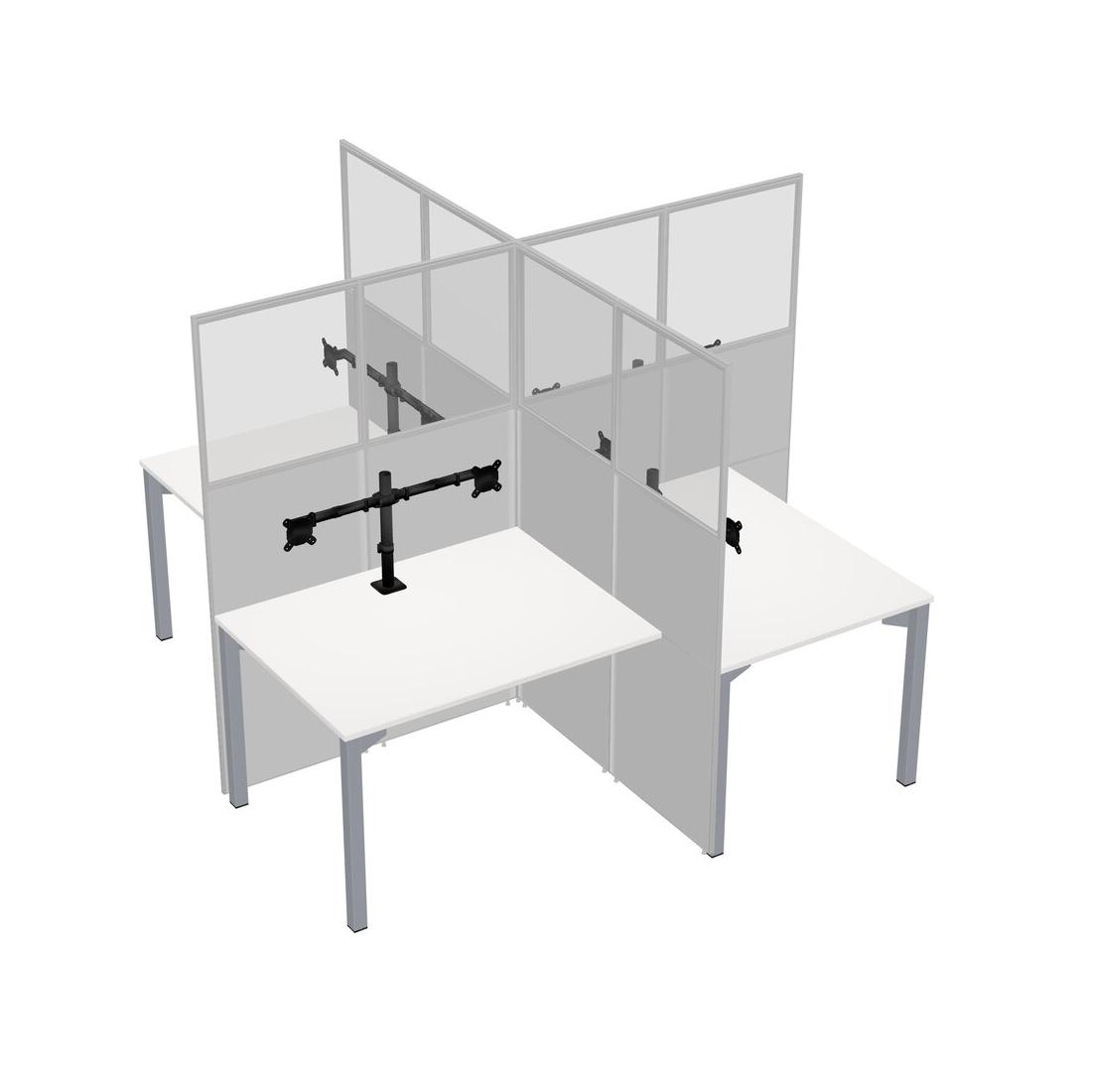 White Quad Cubicle Workstations For 4 + Monitor Arm (double Arms)