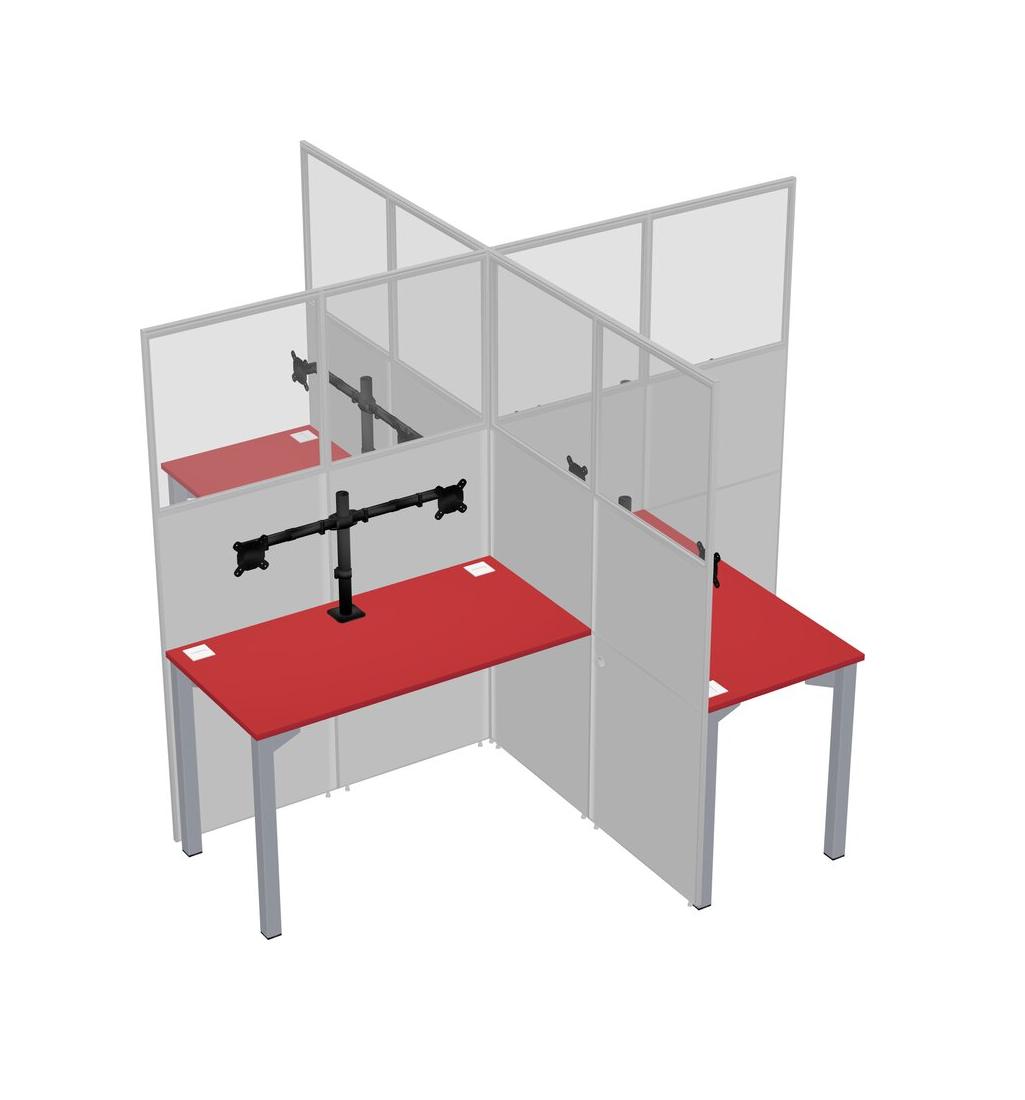 Prism Red Quad Cubicle Workstations For 4 + Monitor Arm (double Arms)
