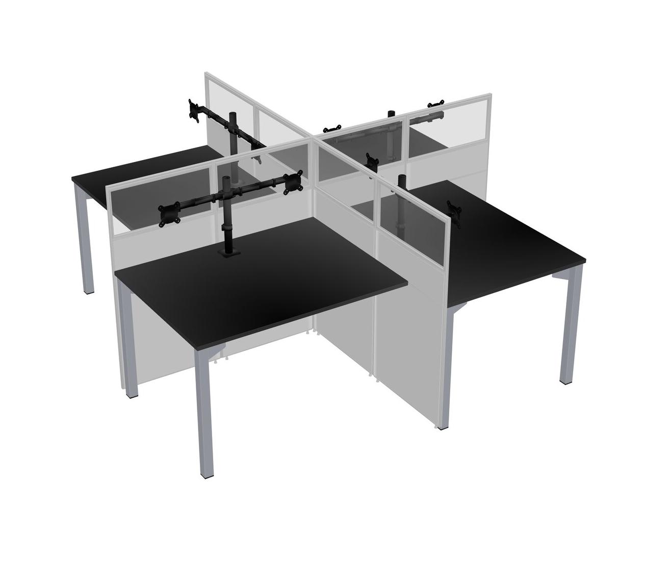 Black Quad Cubicle Workstations For 4 + Monitor Arm (double Arms)