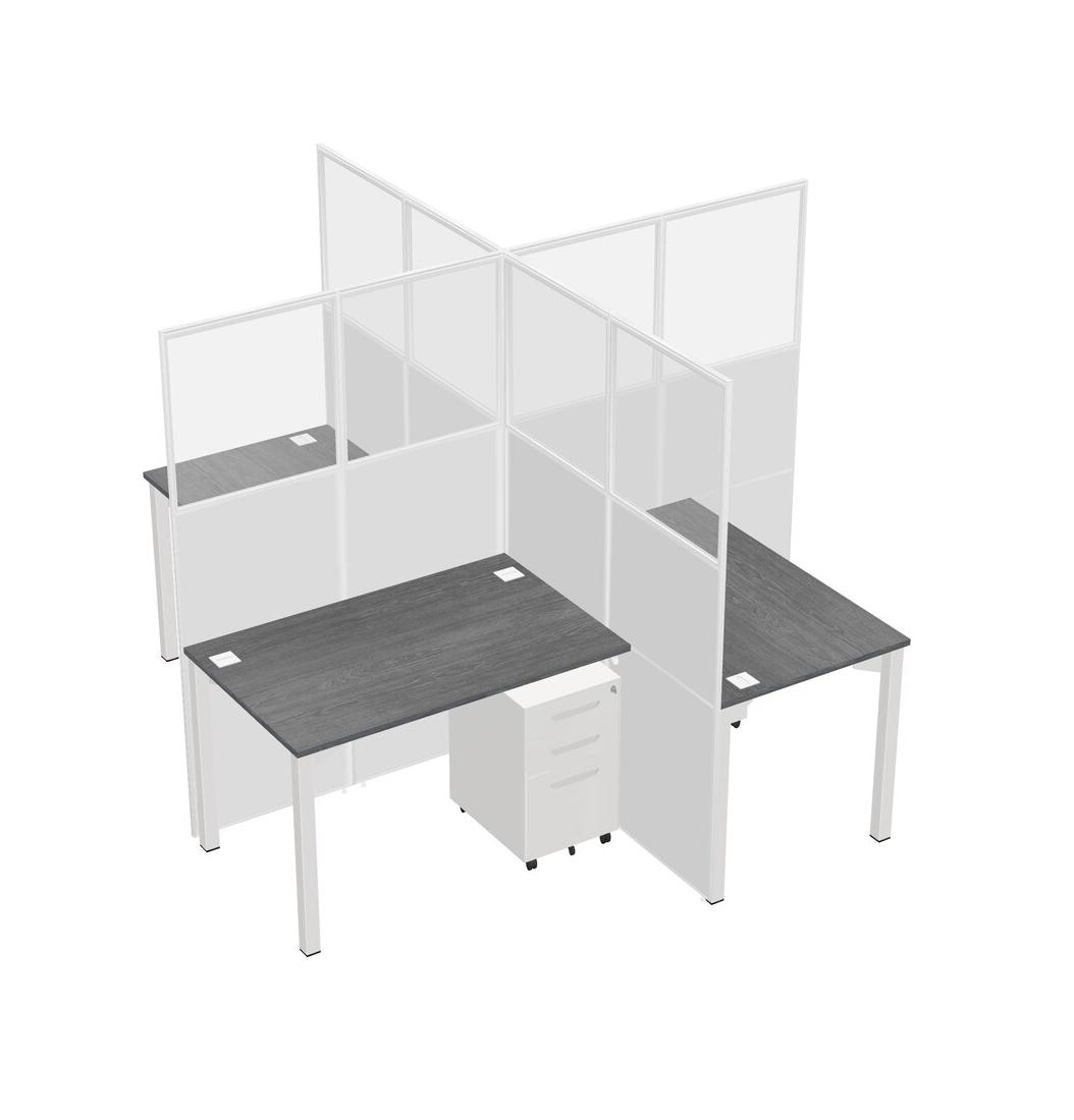 Grey Quad Cubicle Workstations For 4 + White Metal Mobile Drawers