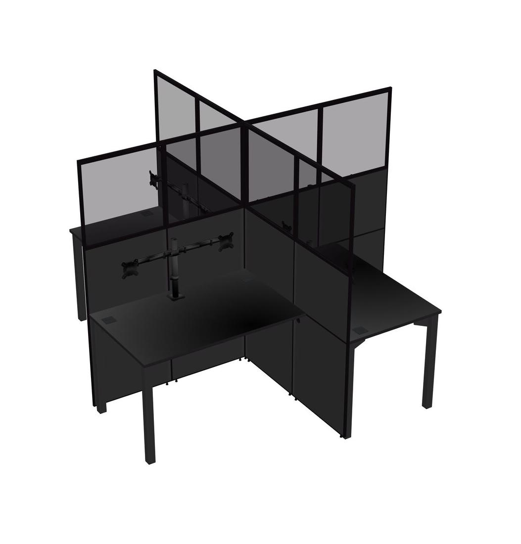 Black Quad Cubicle Workstations For 4 + Monitor Arm (double Arms)
