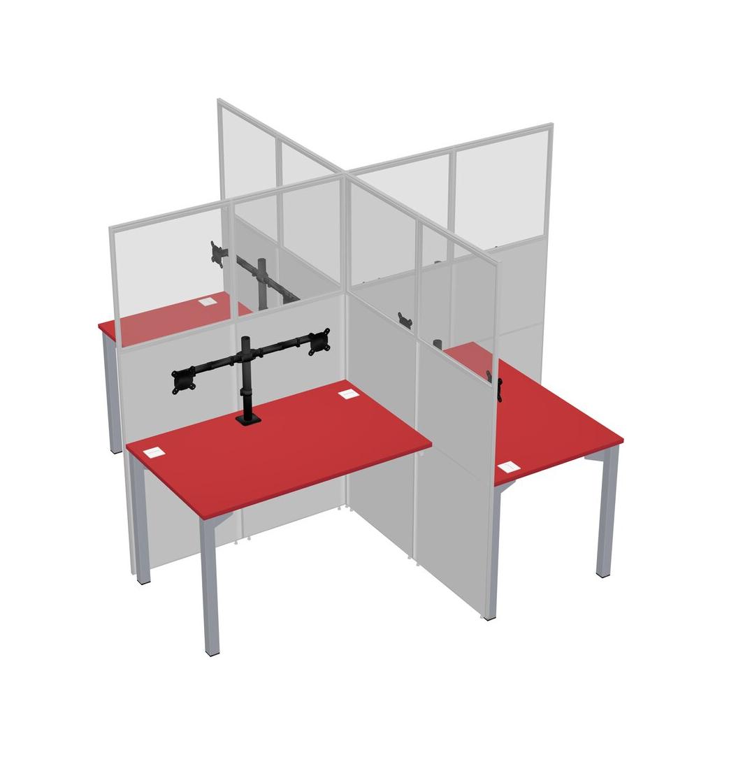 Prism Red Quad Cubicle Workstations For 4 + Monitor Arm (double Arms)