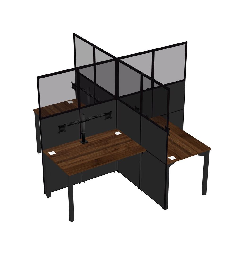 Columbia Walnut Quad Cubicle Workstations For 4 + Monitor Arm (double Arms)