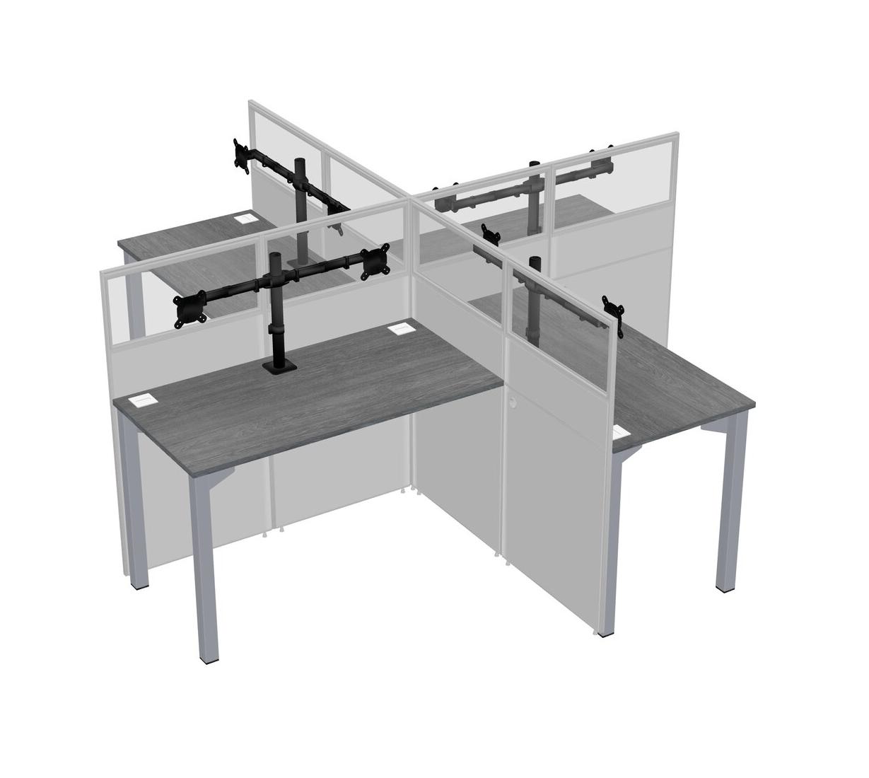 Grey Quad Cubicle Workstations For 4 + Monitor Arm (double Arms)