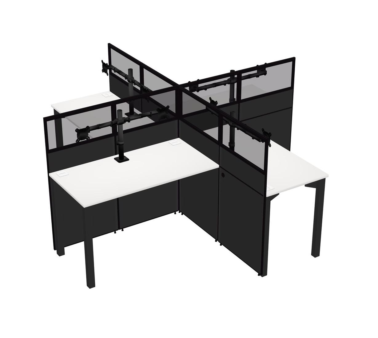White Quad Cubicle Workstations For 4 + Monitor Arm (double Arms)