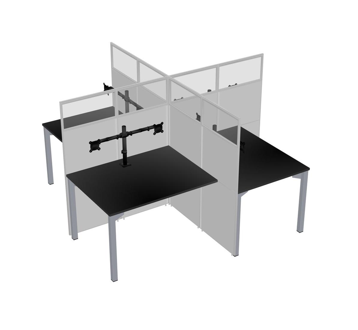 Black Quad Cubicle Workstations For 4 + Monitor Arm (double Arms)
