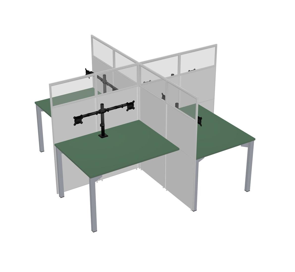 Green Quad Cubicle Workstations For 4 + Monitor Arm (double Arms)
