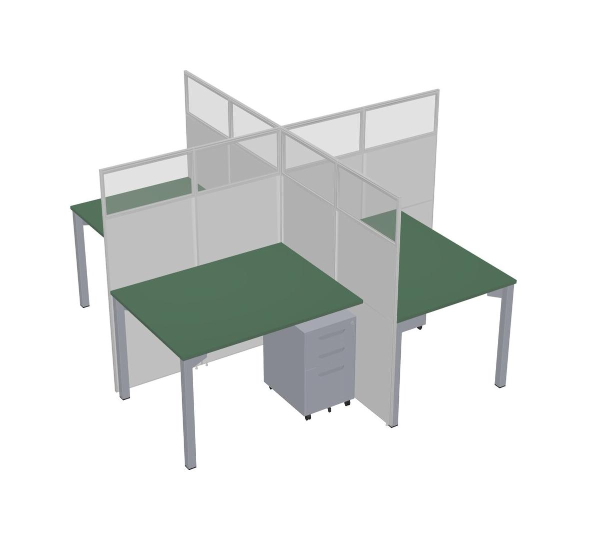 Green Quad Cubicle Workstations For 4 + Grey Metal Mobile Drawers