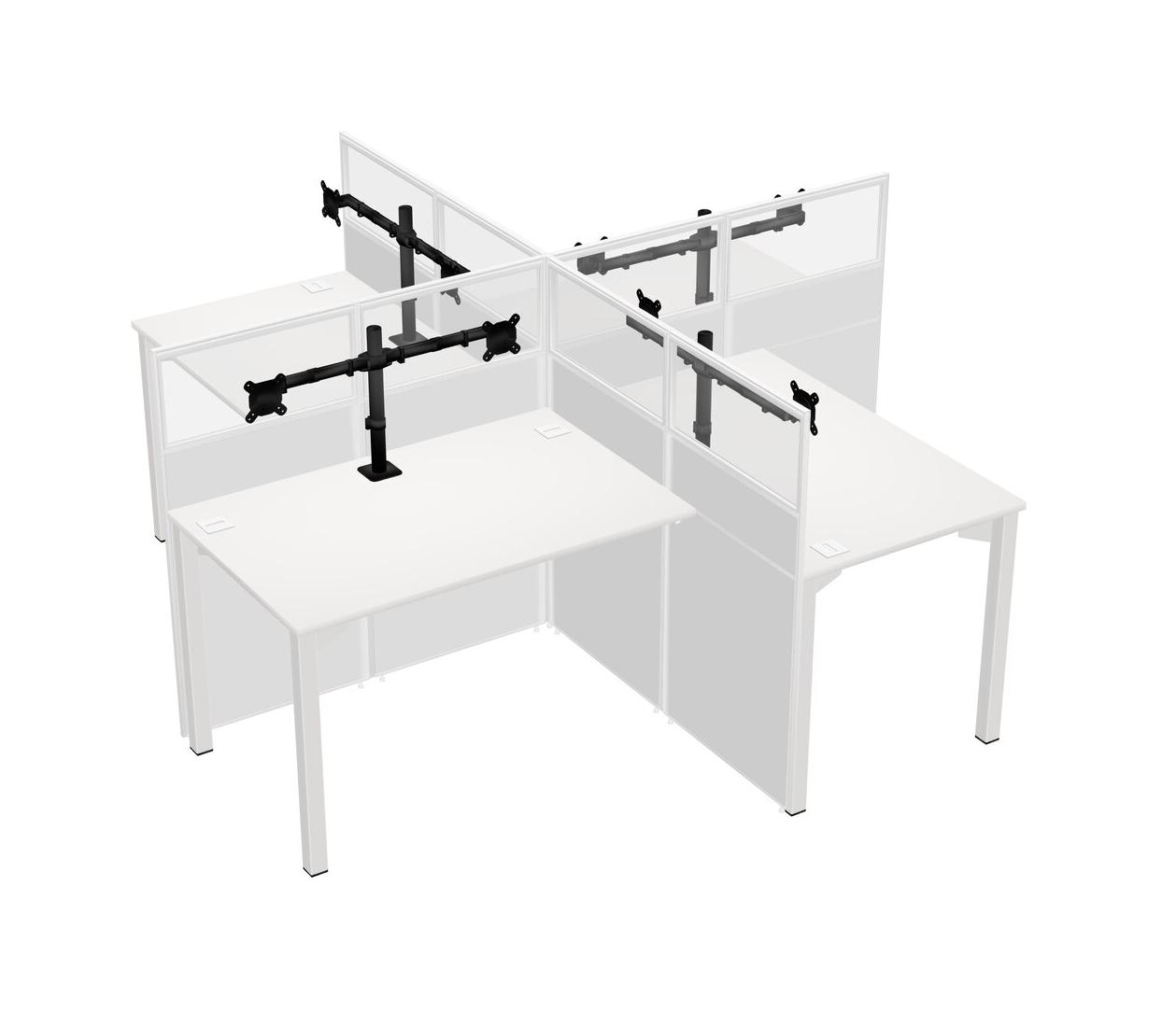 White Quad Cubicle Workstations For 4 + Monitor Arm (double Arms)