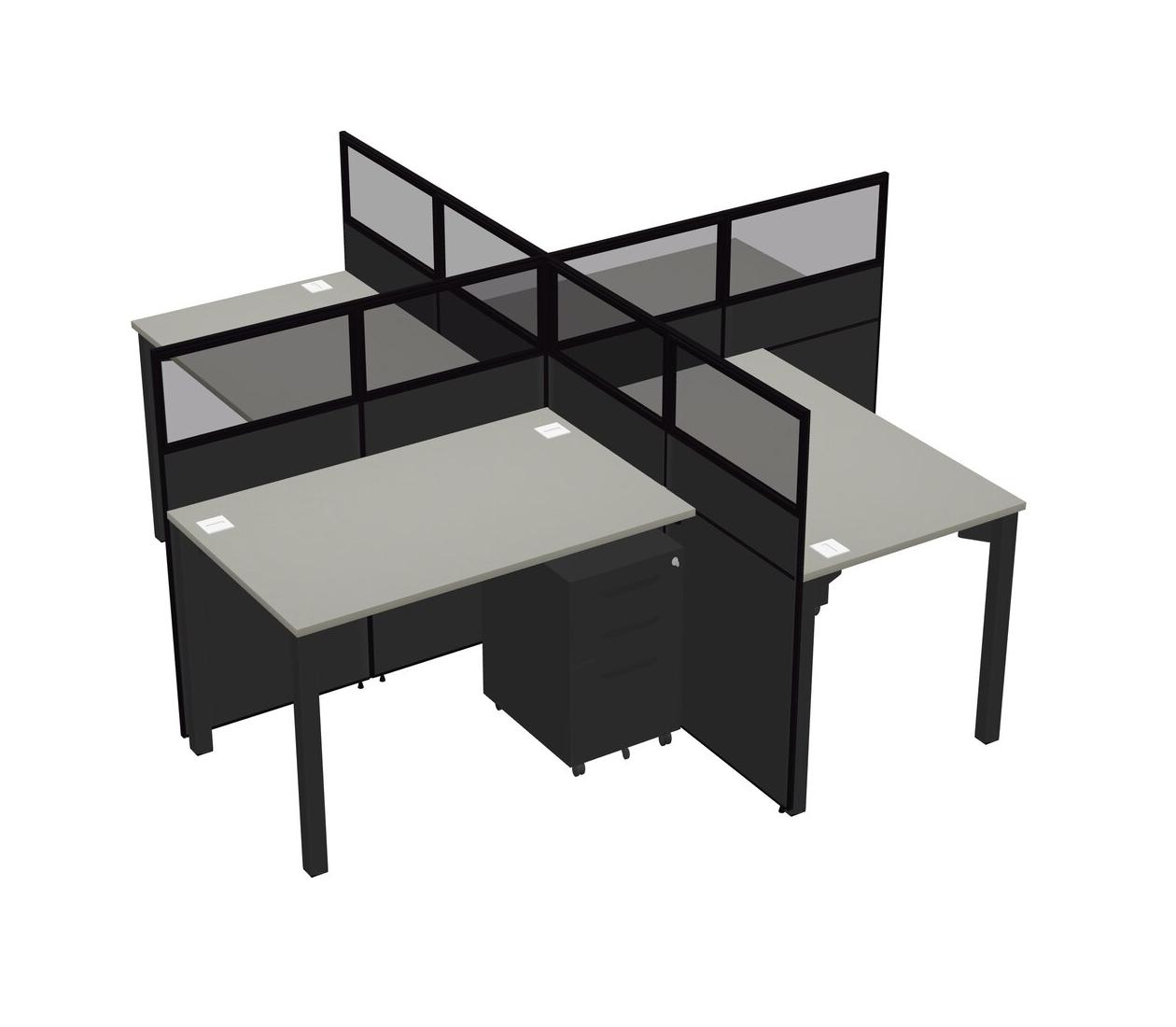 Grey Shadows Quad Cubicle Workstations For 4 + Black Metal Mobile Drawers