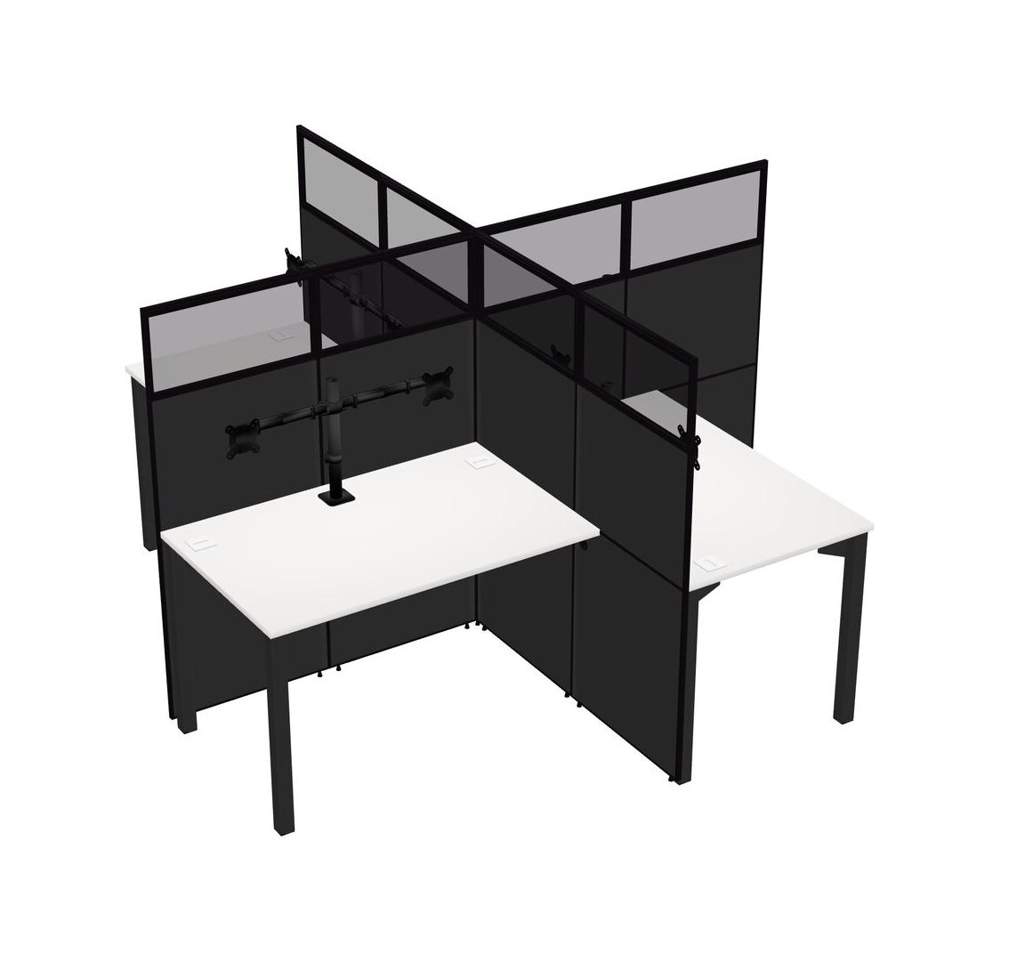 White Quad Cubicle Workstations For 4 + Monitor Arm (double Arms)