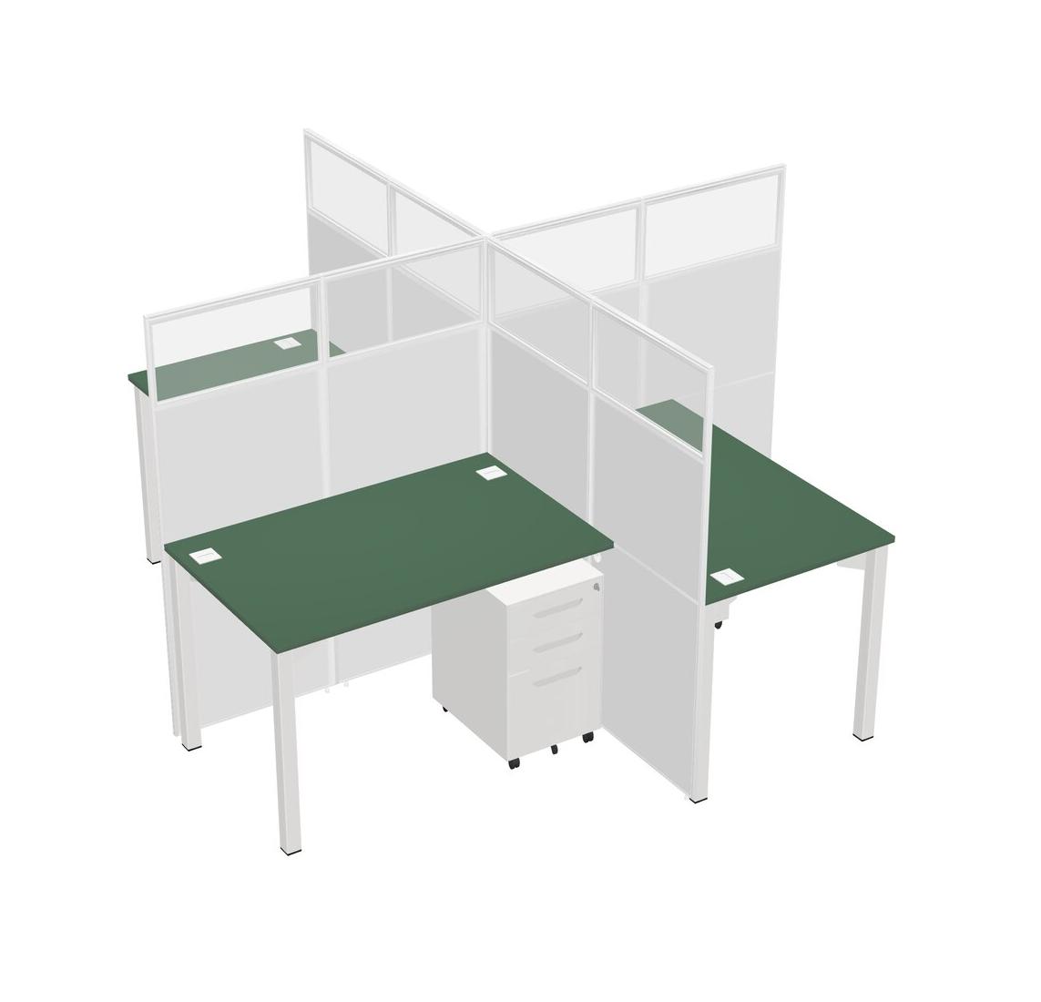 Green Quad Cubicle Workstations For 4 + White Metal Mobile Drawers