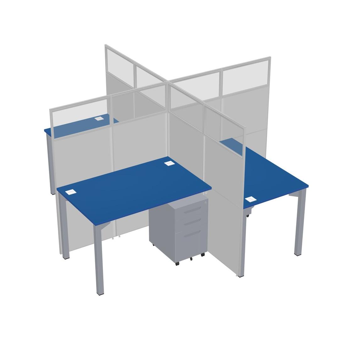 Prism Blue Quad Cubicle Workstations For 4 + Grey Metal Mobile Drawers