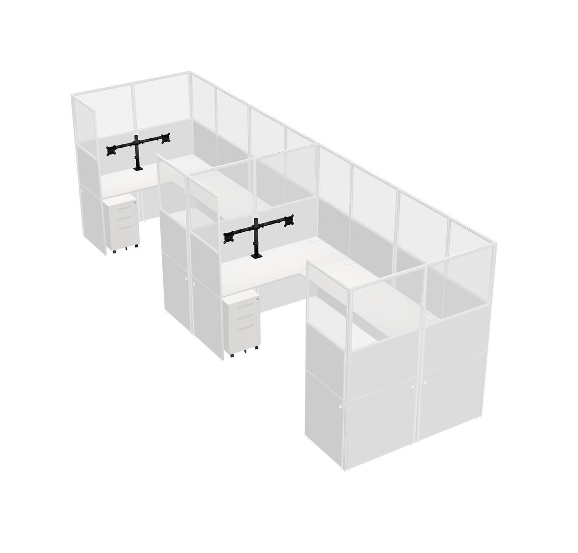 Système De Panneaux En U Blanc Pour 2 Personnes + Bras D'écran (bras Doubles) + Tiroirs Mobiles En Métal Pour 2 Utilisateurs