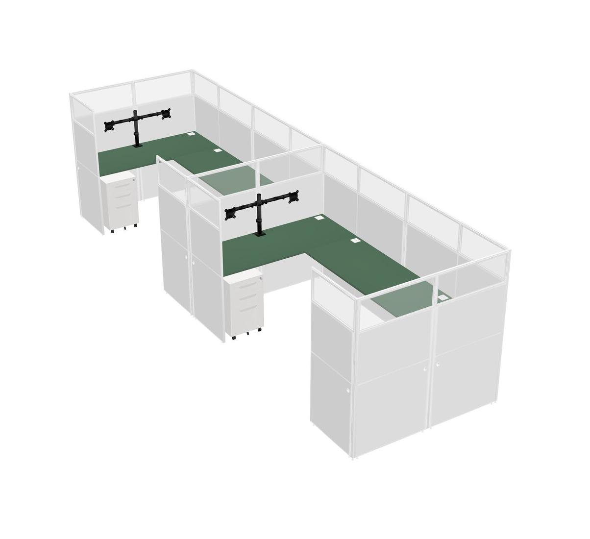 Système De Panneaux En U Vert Pour 2 Personnes + Bras De Moniteur (bras Doubles) + Tiroirs Mobiles En Métal Pour 2 Utilisateur(s)