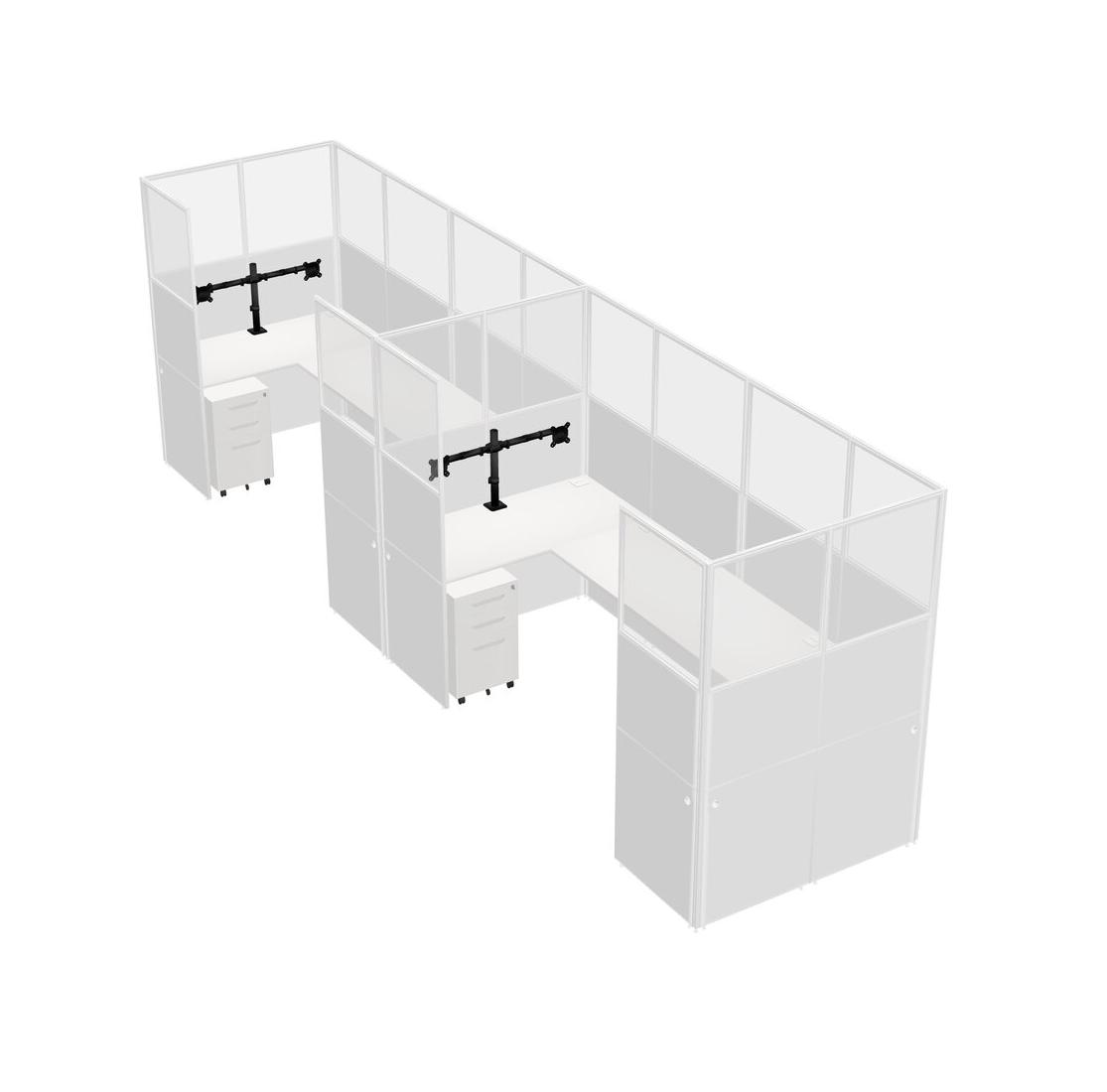 Système De Panneaux En U Blanc Pour 2 Personnes + Bras D'écran (bras Doubles) + Tiroirs Mobiles En Métal Pour 2 Utilisateurs