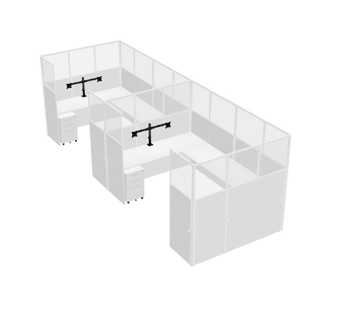 Système De Panneaux En U Blanc Pour 2 Personnes + Bras D'écran (bras Doubles) + Tiroirs Mobiles En Métal Pour 2 Utilisateurs