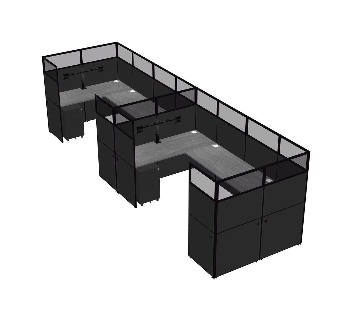 Système De Panneaux En U Gris Pour 2 Personnes + Bras D'écran (bras Doubles) + Tiroirs Mobiles En Métal Pour 2 Utilisateurs