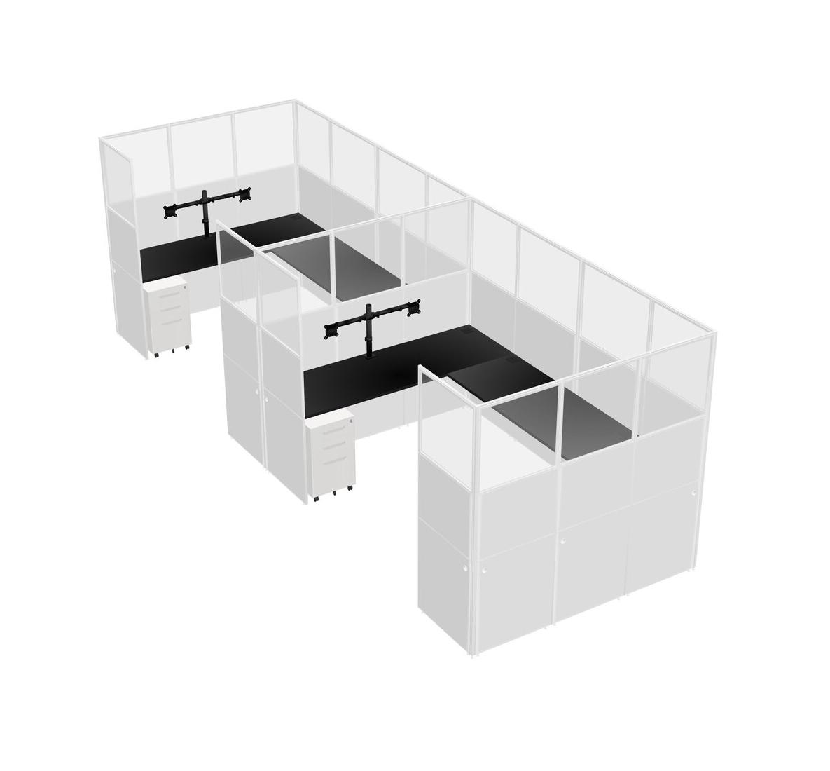 Système De Panneaux En U Noir Pour 2 Personnes + Bras D'écran (bras Doubles) + Tiroirs Mobiles En Métal Pour 2 Utilisateur(s)