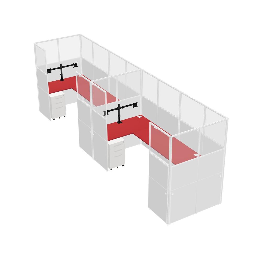 Système De Panneau En U Prism Red Pour 2 Personnes + Bras D'écran (bras Doubles) + Tiroirs Mobiles En Métal Pour 2 Utilisateur(s)