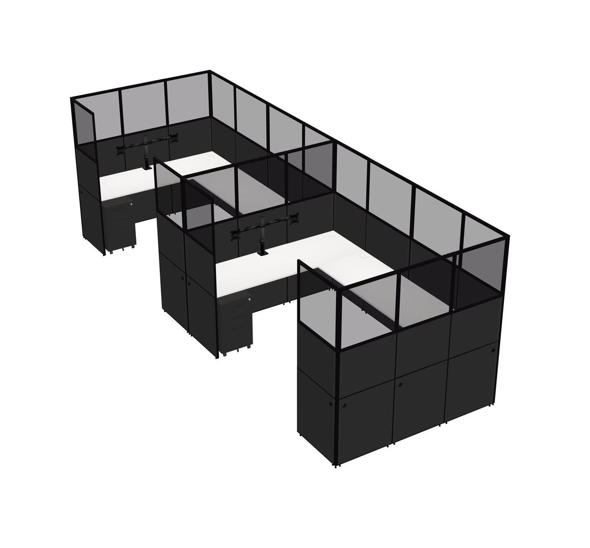 Système De Panneaux En U Blanc Pour 2 Personnes + Bras D'écran (bras Doubles) + Tiroirs Mobiles En Métal Pour 2 Utilisateurs