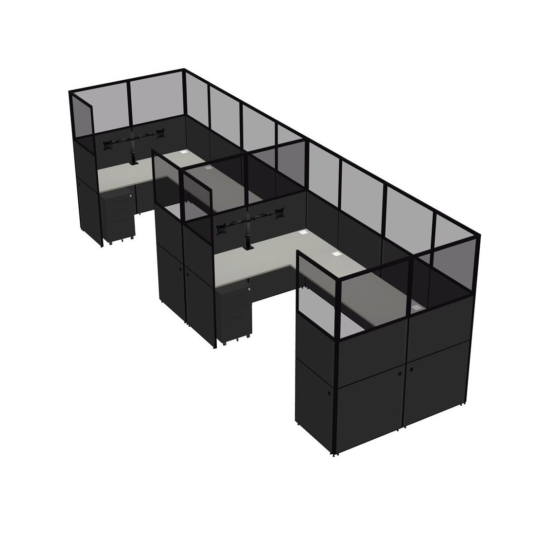 Système De Panneaux En U Grey Shadows Pour 2 Personnes + Bras D'écran (bras Doubles) + Tiroirs Mobiles En Métal Pour 2 Utilisateur(s)