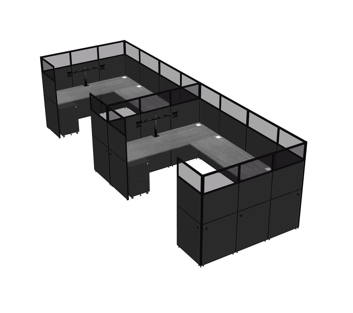 Système De Panneaux En U Gris Pour 2 Personnes + Bras D'écran (bras Doubles) + Tiroirs Mobiles En Métal Pour 2 Utilisateurs
