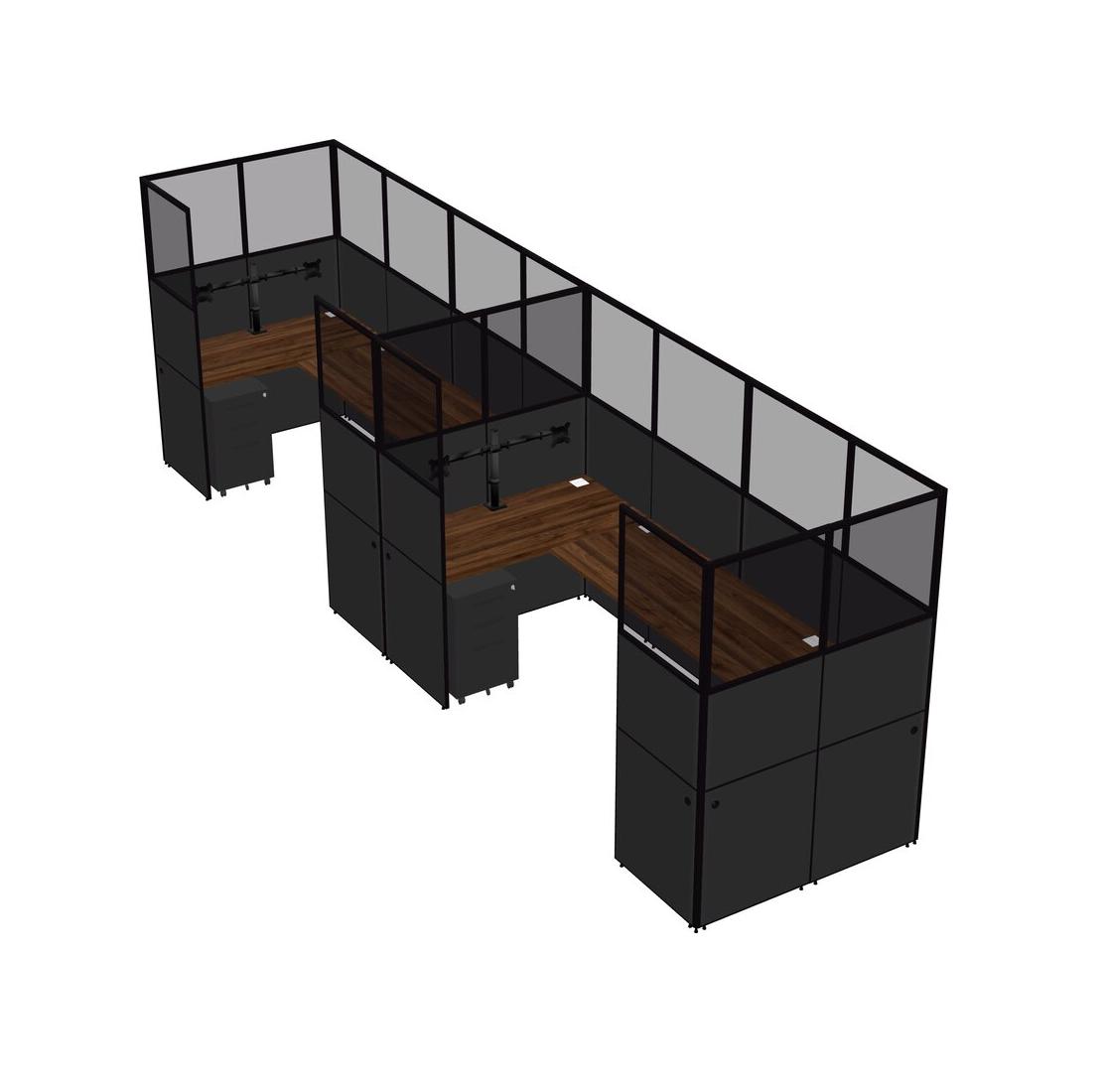Système De Panneaux En U En Noyer Columbia Pour 2 Personnes + Bras D'écran (bras Doubles) + Tiroirs Mobiles En Métal Pour 2 Utilisateurs