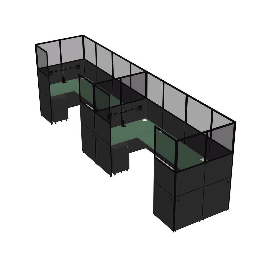 Système De Panneaux En U Vert Pour 2 Personnes + Bras De Moniteur (bras Doubles) + Tiroirs Mobiles En Métal Pour 2 Utilisateur(s)