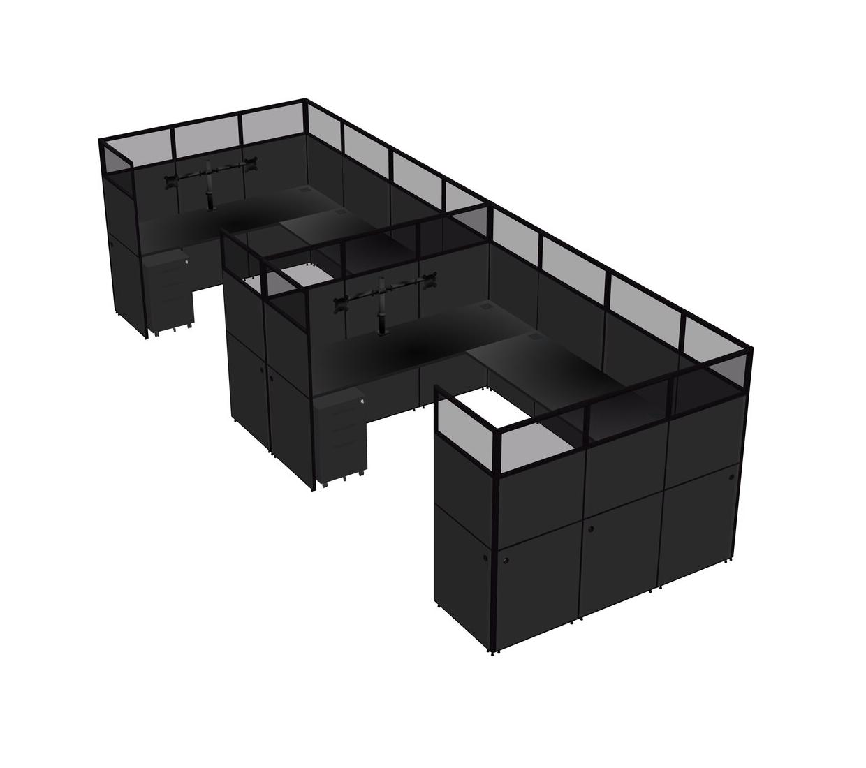 Système De Panneaux En U Noir Pour 2 Personnes + Bras D'écran (bras Doubles) + Tiroirs Mobiles En Métal Pour 2 Utilisateur(s)