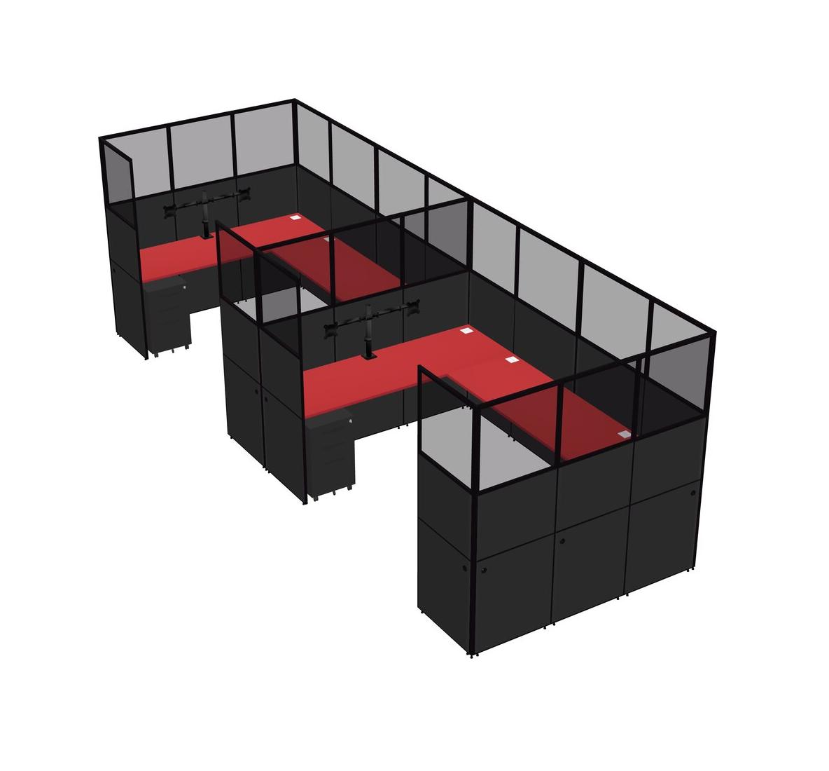 Système De Panneau En U Prism Red Pour 2 Personnes + Bras D'écran (bras Doubles) + Tiroirs Mobiles En Métal Pour 2 Utilisateur(s)