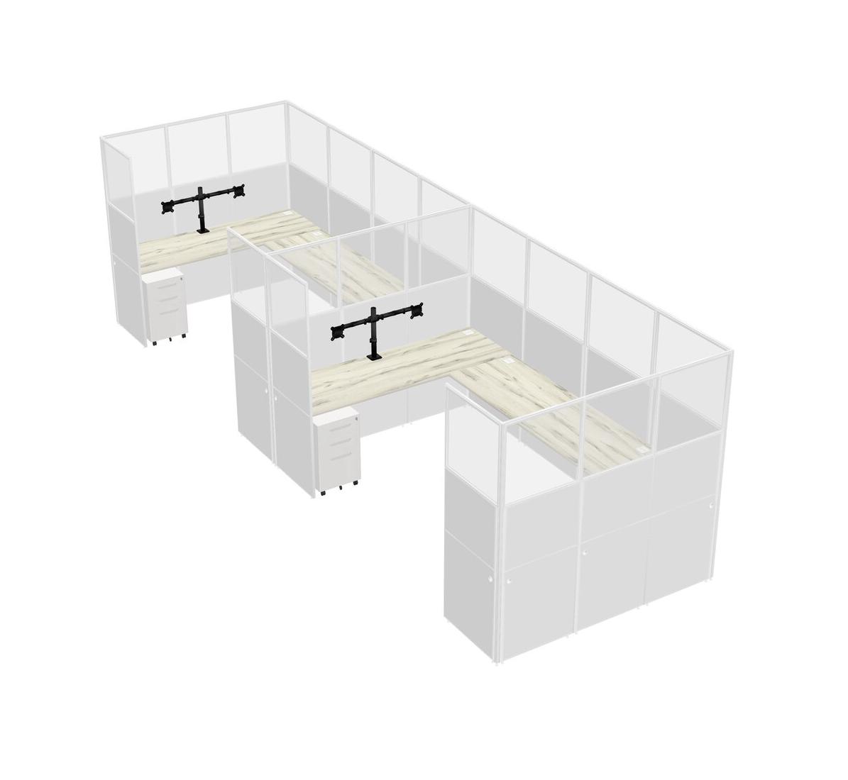 Système De Panneaux En U Heinne Holz Pour 2 Personnes + Bras D'écran (bras Doubles) + Tiroirs Mobiles En Métal Pour 2 Utilisateur(s)