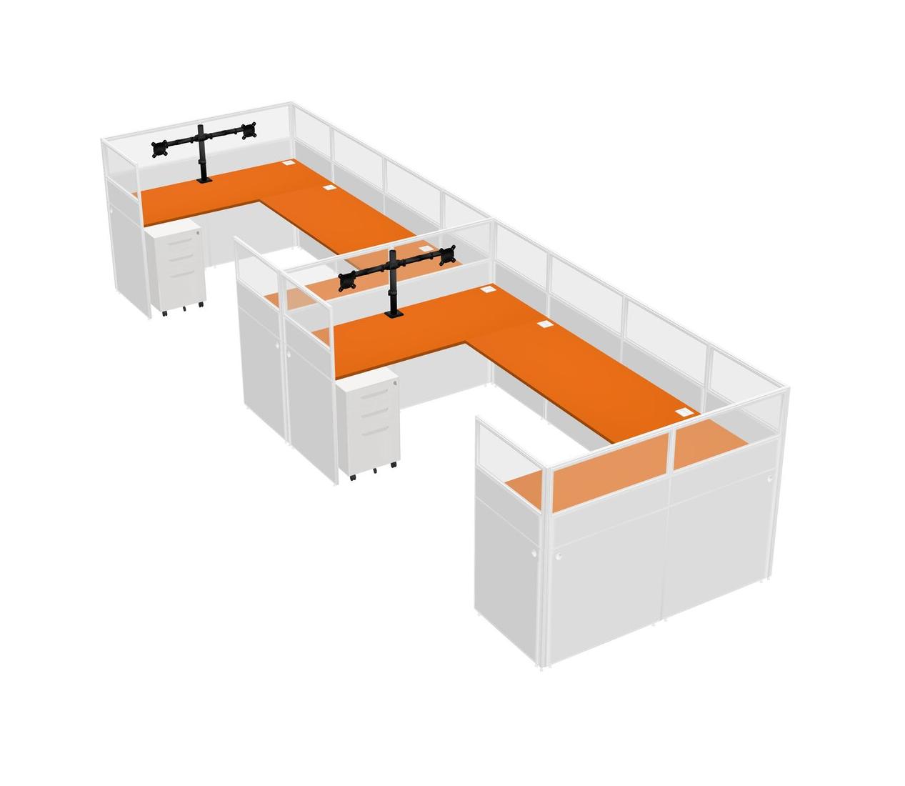 Système De Panneaux En U Orange Pour 2 Personnes + Bras De Moniteur (bras Doubles) + Tiroirs Mobiles En Métal Pour 2 Utilisateur(s)