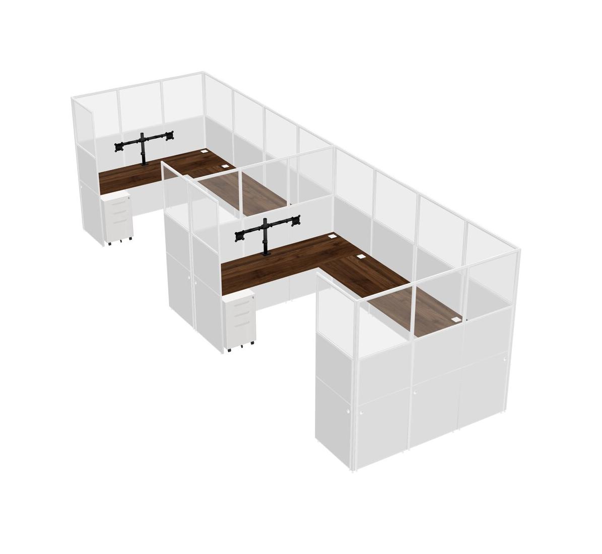 Système De Panneaux En U En Noyer Columbia Pour 2 Personnes + Bras D'écran (bras Doubles) + Tiroirs Mobiles En Métal Pour 2 Utilisateurs