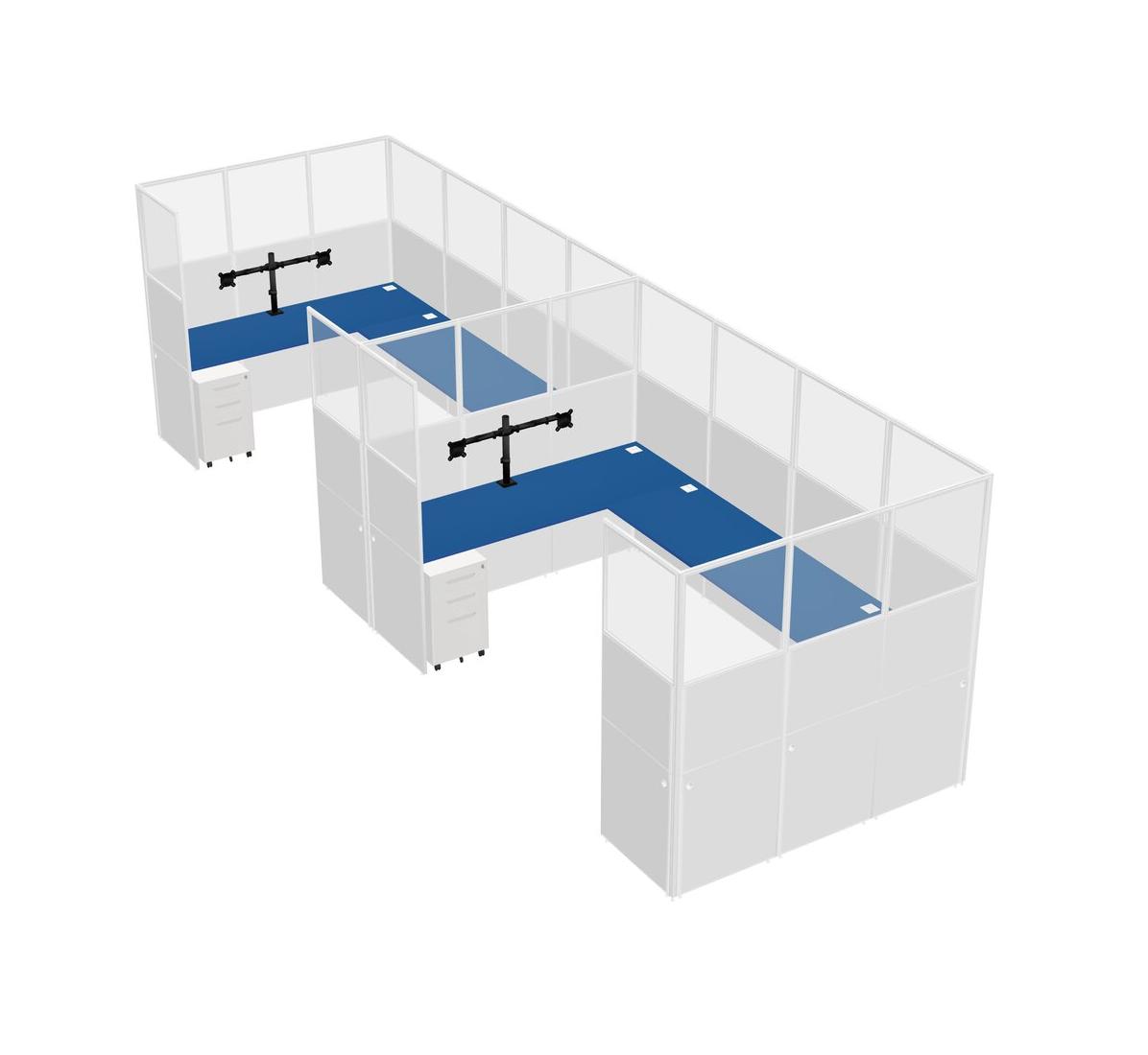 Système De Panneaux En U Prism Blue Pour 2 Personnes + Bras D'écran (bras Doubles) + Tiroirs Mobiles En Métal Pour 2 Utilisateurs