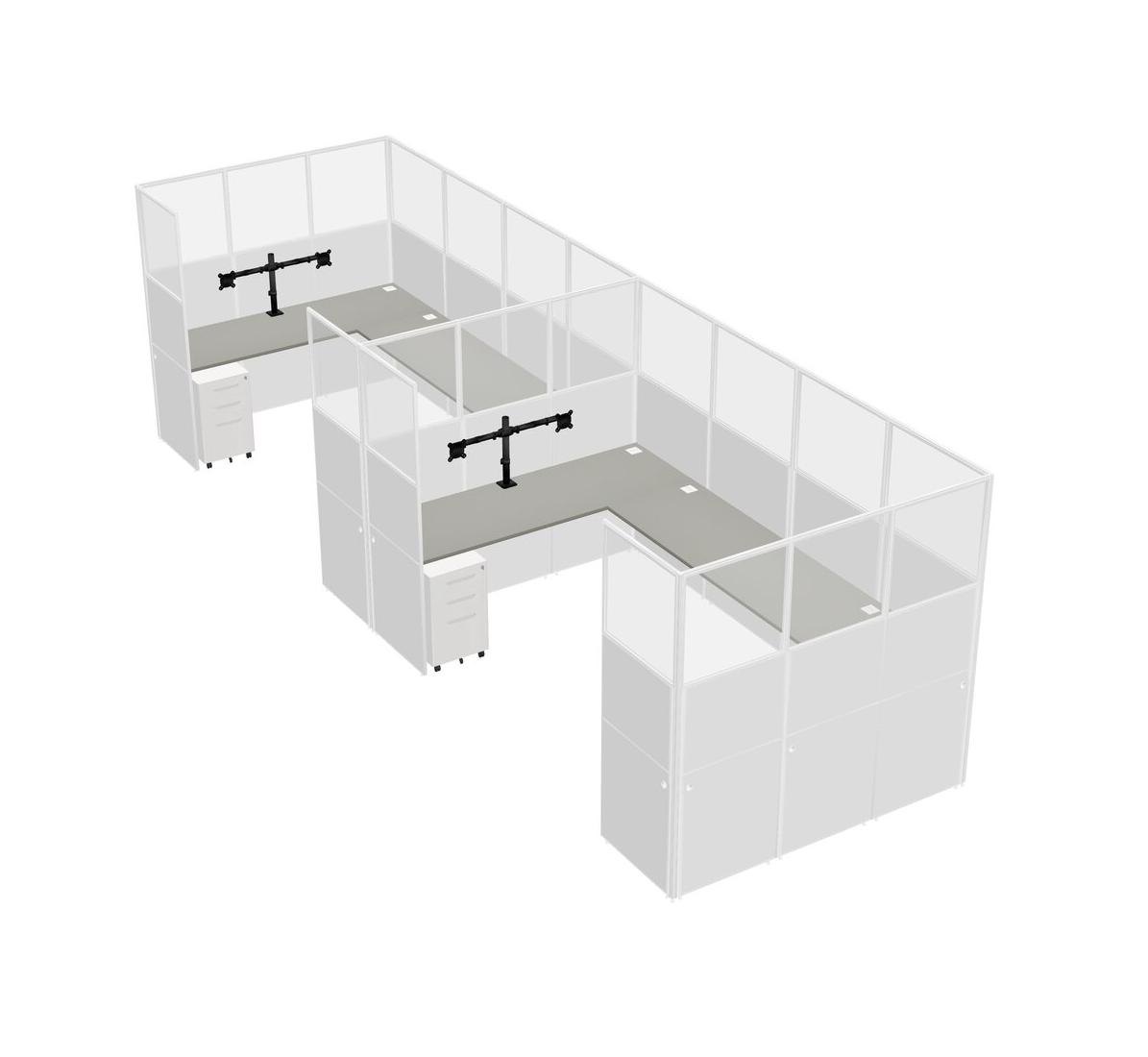 Système De Panneaux En U Grey Shadows Pour 2 Personnes + Bras D'écran (bras Doubles) + Tiroirs Mobiles En Métal Pour 2 Utilisateur(s)