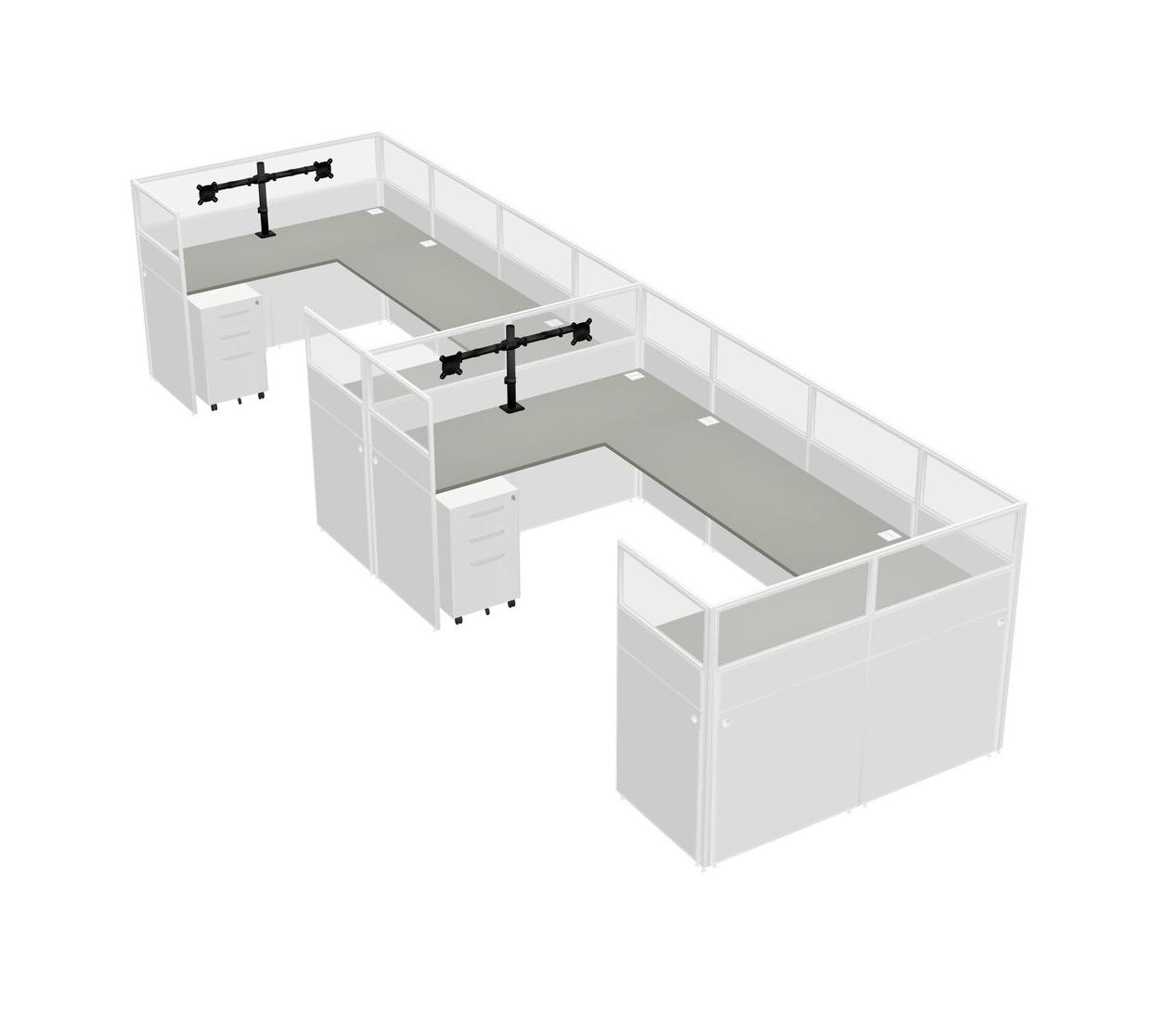 Système De Panneaux En U Grey Shadows Pour 2 Personnes + Bras D'écran (bras Doubles) + Tiroirs Mobiles En Métal Pour 2 Utilisateur(s)