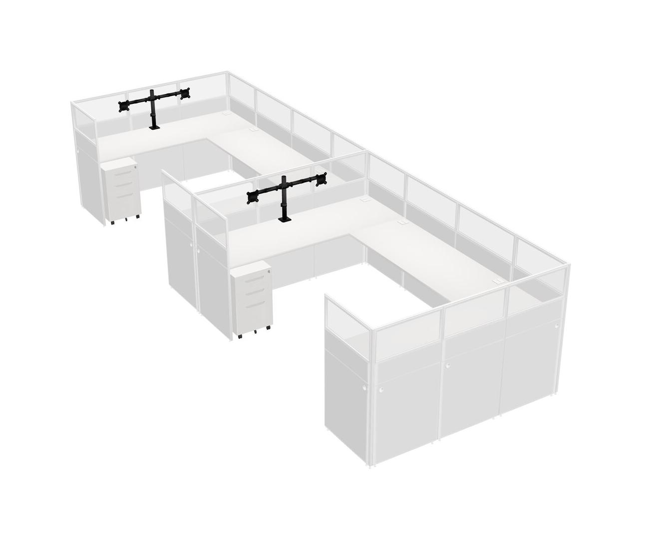 Système De Panneaux En U Blanc Pour 2 Personnes + Bras D'écran (bras Doubles) + Tiroirs Mobiles En Métal Pour 2 Utilisateurs