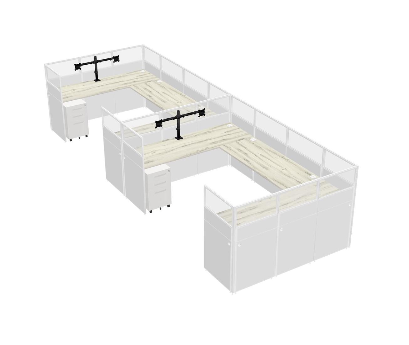 Système De Panneaux En U Heinne Holz Pour 2 Personnes + Bras D'écran (bras Doubles) + Tiroirs Mobiles En Métal Pour 2 Utilisateur(s)
