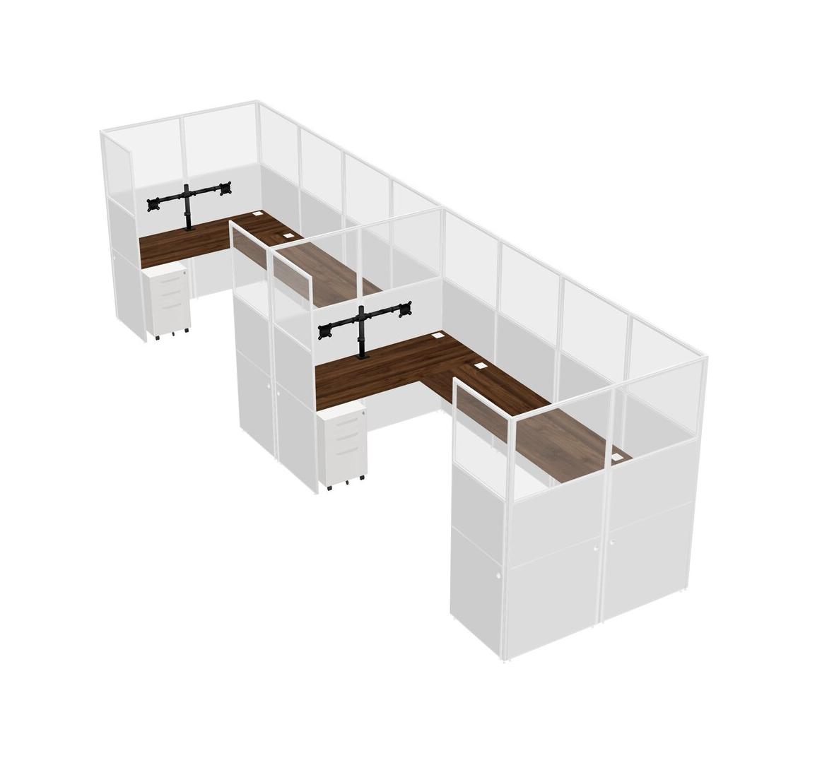 Système De Panneaux En U En Noyer Columbia Pour 2 Personnes + Bras D'écran (bras Doubles) + Tiroirs Mobiles En Métal Pour 2 Utilisateurs
