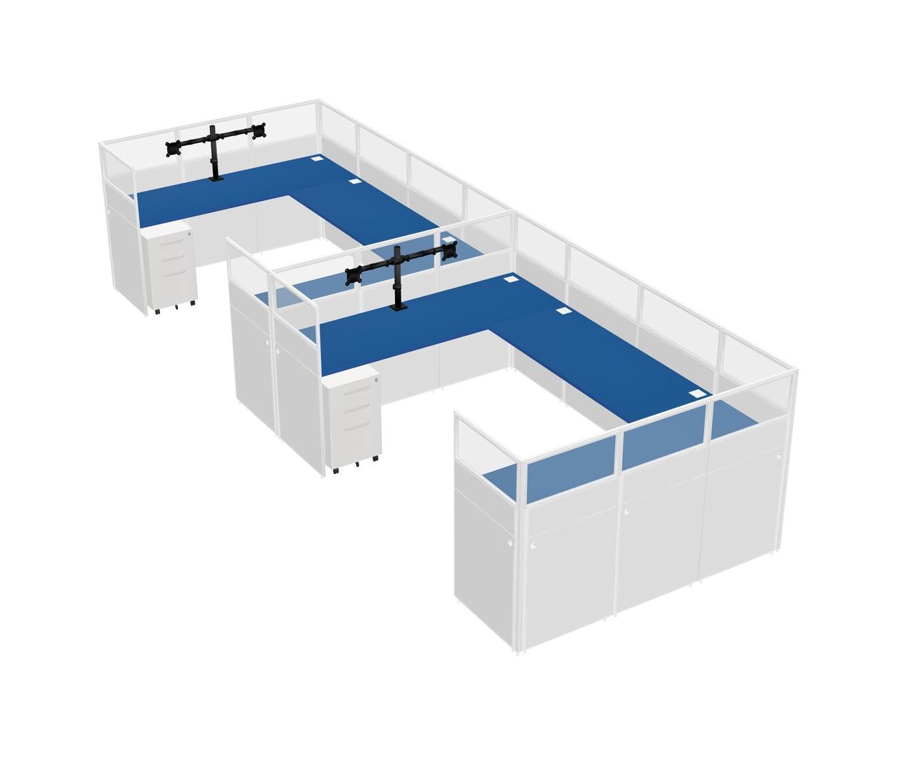 Système De Panneaux En U Prism Blue Pour 2 Personnes + Bras D'écran (bras Doubles) + Tiroirs Mobiles En Métal Pour 2 Utilisateurs