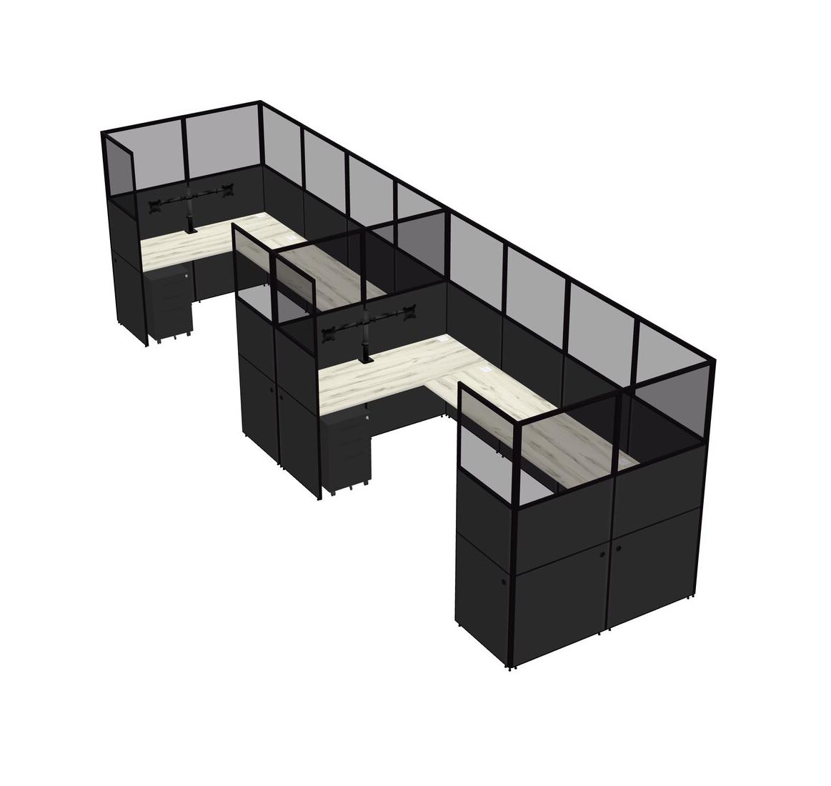 Système De Panneaux En U Heinne Holz Pour 2 Personnes + Bras D'écran (bras Doubles) + Tiroirs Mobiles En Métal Pour 2 Utilisateur(s)