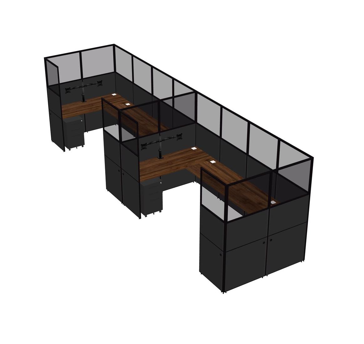 Système De Panneaux En U En Noyer Columbia Pour 2 Personnes + Bras D'écran (bras Doubles) + Tiroirs Mobiles En Métal Pour 2 Utilisateurs